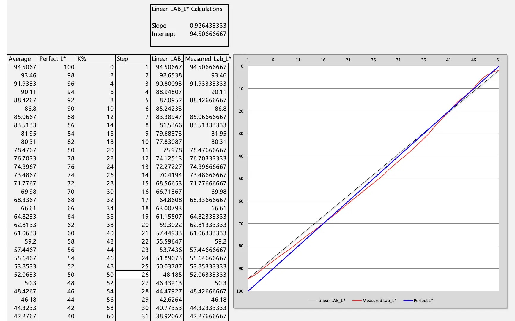 잠시 눈을 감고, 밖에 나가서 숨을 들이 마시고 담배를 한대 태우고 음료수 한 캔을 마신 다음 의자에 눈 감은 채로 잠시 앉아 있다가 해당 컬러칩 셋트를 처음부터 다시 측정했다. 값이 멀쩡하게 잘 나왔다.