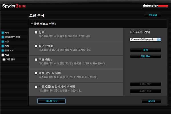 그런데... Spyder 3 Elite 4 버전은 이게 끝이 아닙니다. Spyder 3 Elite 4 버전에는 또 다른 추가 기능이 생겼습니다. 바로 모니터 분석툴에 해당하는 것인데요. 다음과 같은 기능들이 있습니다.