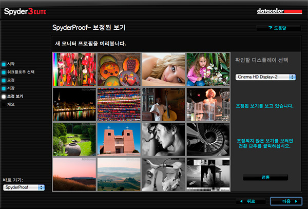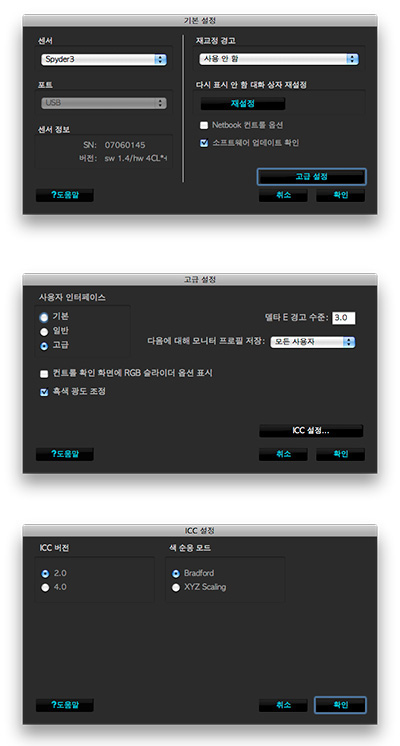 하지만 이걸로 끝내면 억울합니다. 분명 제가 빠트린게 있을겁니다. 그러고 보니 Spyder 3 Elite 버전에 번들되어 있는 Elite 4 캘리브레이션 프로그램을 구석 구석 살펴 보니 처음엔 제법 인상이 좋았습니다. 캘리브레이션의 개념 조차 잘 모르는 극 초심자를 배려한 친절한 메뉴식 접근과 더불어 한글과 된것이 제일 좋았습니다. 그런데 시간을 들여 찬찬히 보고 있으니 느낌이 좀 이상합니다.