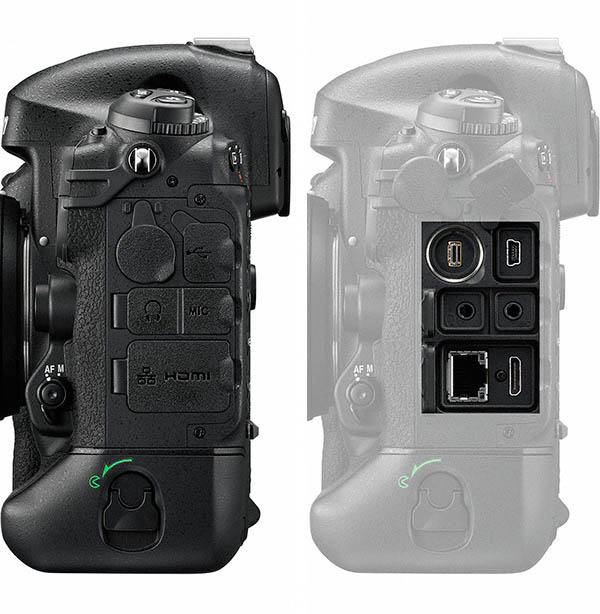 물론 세로 그립의 서브 커맨드 다이얼을 왜 이렇게 만든 것인지 그 의도는 이해할 수 있습니다. 그럼에도 불구하고 세로 그립용 서브 커맨드 다이얼은 플래그쉽 답지 못한 오점이라 할 수 있습니다. 이러한 디자인은 이해 할 수 있으나 납득 할 수 없습니다. 차기작에는 개선되어 나오길 기대 합니다. 그럼 세로 그립용 서브 커맨드 다이얼 이야기는 여기까지 하도록 하고 계속 해서 바디의 측면을 살펴 보도록 합시다.