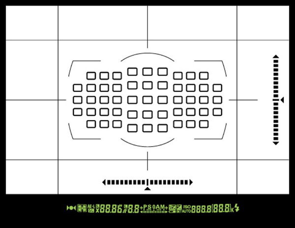 펜타프리즘을 통하여 우리 눈에 보이게 될 파인더 상에 보이는 정보량은 충실 합니다. 기본적으로 필요한 정보는 어지간해선 파인더 안에서 다 볼 수 있을 정도 입니다. 이것이 가능한 이유는 파인더에 투과형 액정을 통하여 보여질 정보를 필요에 따라 켜고 끌 수 있는 기능이 포함되어 있기 때문에 촬영자의 습관과 리듬에 따라서 커스텀 할 수 있는 것 또한 좋습니다. 또한 수직, 수평을 알 수 있는 수준기가 파인더의 최우측과 최하단부에 보이도록 설정 할수도 있습니다. 파노라마, 풍경, 건축 사진등에 매우 유용할것 입니다.