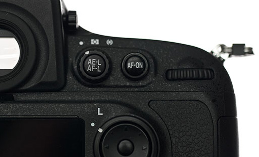 후면 상단에는 AE, AF Lock 버튼과 AF-ON 버튼이 마련되어 있습니다. 더불어 측광 방식을 선택할 수 있는 다이얼이 장착 되어 있습니다만, 저의 경우 살짝 아쉬운 느낌입니다. 허나 펜타프리즘 부에 내장형 플래쉬를 장착함으로 어쩔 수 없는 선택이라 보여 집니다.