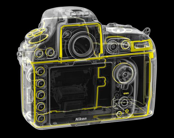 이런 부드러운 인상의 디자인이지만 샤시 프레임의 재료는 마그네슘 합금을 사용하여 경량화와 견고함을 양립하였습니다. 특히 무게의 경우 D700에 보다 무려 90g 이나 가볍게 완성 되었습니다. 불과 두어 시간만 카메라를 들고 나가도 약 100g 정도의 차이는 체력 소모에 큰 차이를 느낄 수 있다는 것은 행군, 산행, 사이클링을 해보신 분이라면 더 이상 설명이 필요 없을 듯 합니다. 게다가 이 정도의 무게라면 여성이 들어도 무리가 없는 무게입니다.