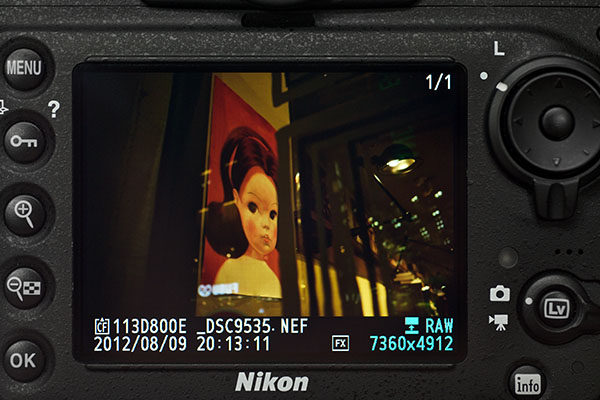 따라서 최초 D800, D800E를 구입하신 분들은 결과물의 해상도와 날카로움을 이야기 하기 이전에 각 렌즈별로 AF 캘리브레이션을 먼저 하는 것을 강력하게 권장 합니다. 위에서도 언급 하였듯, D타입 이후 CPU내장형 AF 렌즈들의 경우 렌즈 내부의 시리얼 번호까지 D800E가 자동으로 인식하고 그에 따른 AF교정값을 바디에 자동으로 전송하므로 실사용에 불편한 점은 전혀 없습니다.