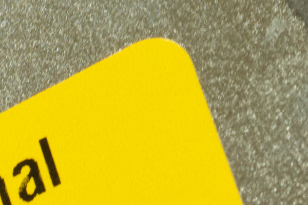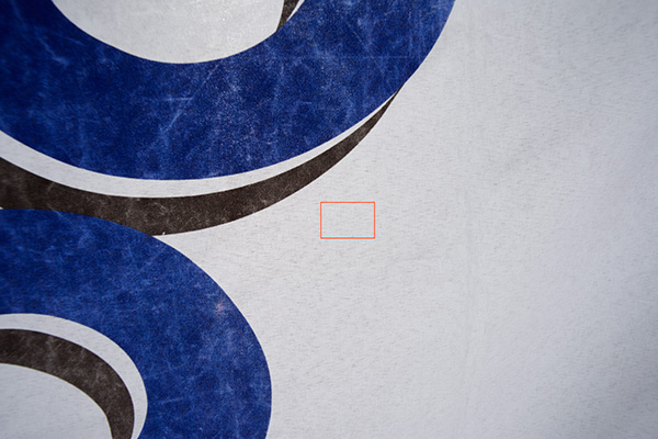 길에서 흔히 볼 수 있는 소위 플랭카드 혹은 실사인쇄에 사용되는 천을 촬영 한 것 입니다. Zeiss Distagon T* 25mm f/2.8 ZF 렌즈로 촬영한 샘플 입니다. 붉은색 사각형을 1:1 픽셀 크기로 리사이즈 없이, 어떠한 후보정 및 샤프닝 없이 원본 그대로 크롭 한 것이 아래의 이미지 입니다.