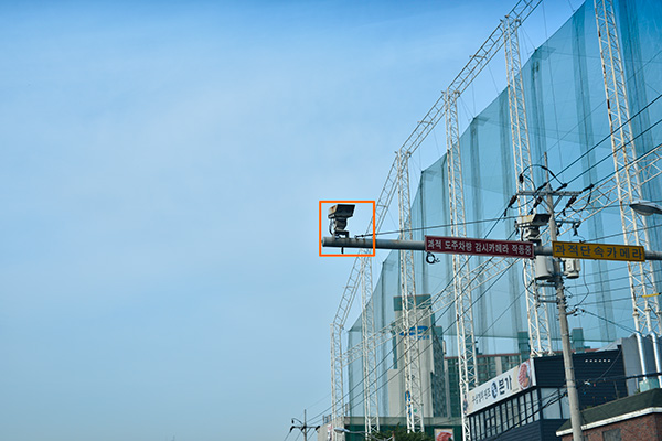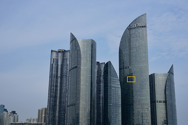 위의 사진은 시속 60Km 주행 중 조수석 전면 유리를 통해 순간적으로 AF 포커싱을 한 사진 입니다. 그리고 위의 사각형을 1 : 1 픽셀 매칭 (100% 확대) 로 살펴보면,