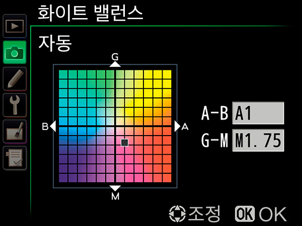 오토 화이트 밸런스에도 개선이 이루어졌습니다. 또한 화이트 밸런스의 발생 경향을 보다 세밀히 지정 할 수 있는 기능 추가 되었습니다. 바로 이런 식으로 말이죠. 오토 화이트 밸런스를 잘 사용하고 있지만 상황에 따라 좀 따뜻한 느낌이 드는 경향으로 잡혔으면 좋겠다던가, 아니면 반대로 좀 시원하고 파란 느낌이 드는 경향으로 오토 화이트 밸런스가 잡혔으면 좋겠다 싶은 부분을 세세하게 튜닝 할 수 있습니다.