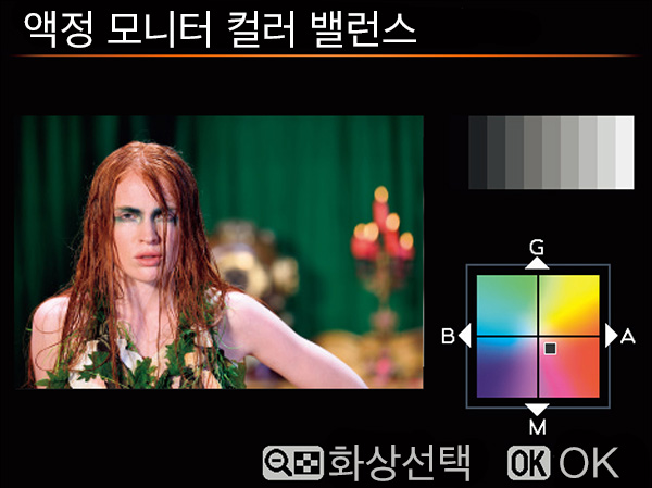 백 모니터의 컬러 밸런스를 사용자가 직접 조정 할수 있게 되었습니다. 따라서 기준이 되는 컴퓨터 모니터와 액정 색을 어느 정도 가깝게 하는게 실질적으로 가능해졌습니다. 사용하는 컴퓨터 모니터를 캘리브레이션 해놓고, D810의 백 모니터의 색도 비슷하게 맞춰놓으면 제법 작업 효율이 오를듯 합니다.