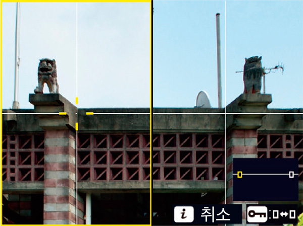 이럴땐 피사체를 기준으로 직접 맞춰야 하는데, 수직 및 수평을 맞추는데 있어서 위와 같은 방식이라면 엄밀히 촬영해야 하는 상황에서도 상당히 편리하게 촬영 할 수 있습니다. 마치 건축 촬영 전용 디지털 스플릿 스크린에 가깝다 하겠습니다.