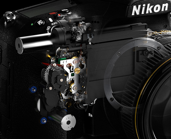 이러한 고신뢰도의 셔터를 기반으로 셔터 유닛이 동작할때 바디의 진동을 억제하기 위한 신설계의 구동기구 함께 하게 됩니다. 확실한 자료 혹은 D810을 직접 열어 보면 보다 확실히 알 수 있겠지만, 적어도 지금껏 수집한 자료를 보자면 Nikon F6때 채용된 플로팅 구조를 채용한 것으로 유추 할 수 있습니다. 이것은 단순히 셔터 유닛에만 국한 된 것이 아닙니다.