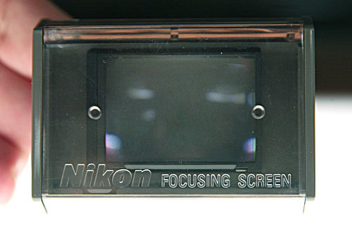 장착하는 것 또한 F5 답게 매우 심플하고 간단합니다. 포커스 스크린을 교환할때 쓰이는 집게도 필요 없습니다. 단순히 손으로 포커스 매트를 들어내고 다시 끼우면 끝 입니다. 걸리는 시간은 불과 몇초 걸리지 않습니다. 이것은 Nikon의 F 한자리 숫자 카메라에게 있어서 전통 중 하나 입니다.