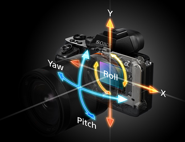 이렇게 센서 구동형 손떨림 방지를 조그만 a7 II의 바디에 넣기 위한 다양한 고민과 노력을 통해 완성된 손떨림 방지 센서의 특징은 어떻게 될런지 당연 살펴보지 않으면 안되겠습니다. 앞서 잠시 이야기 했듯 풀 프레임 사이즈 센서 최초의 5축 손떨림 방지를 실현 하였습니다. 먼저 이 '5축' 이라는 것을 살펴 봐야 할 것입니다.