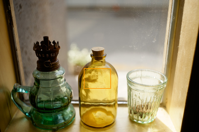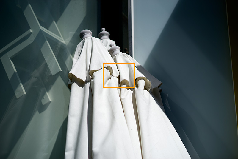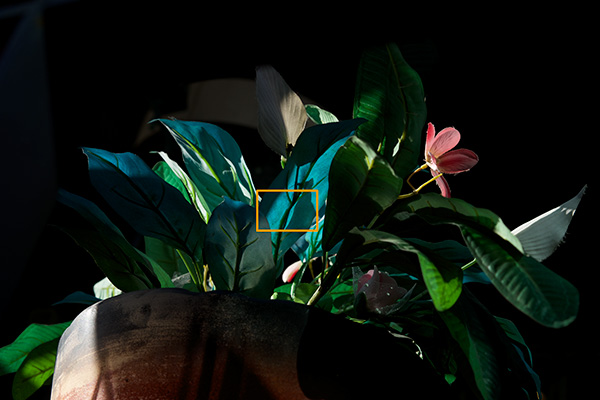 그렇다면 실제 센서의 성능은 어떨까요? 먼저 디테일 재현력을 한번 살펴 볼 필요가 있겠습니다. 일단 쉐도우 부의 디테일 재현력을 살펴 볼까요? 사용 렌즈는 FE 렌즈 중에 최상의 해상력을 가지고 있는 Carl Zeiss FE 55mm Sonnar f1.8 ZA 렌즈를 사용 했으며 오렌지 색 사각형을 1 : 1 픽셀 매칭 (100% 확대) 한 이미지가 이미지 입니다.