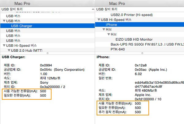 요즘 나오는 USB 충전 기기들은 컴퓨터가 지원할 시 USB 2.0 기본 스팩인 0.5A를 넘어서 추가 0.5A을 지원함으로 총 1A의 전류를 공급합니다. 당연 충전시간은 훨씬 빨라집니다. 하지만 SONY a7 II의 경우 이런 기능을 지원하지 않고 있습니다. 위의 그림을 보시면 바로 알 수 있겠습니다만, a7 II은 컴퓨터로 충전시 추가 동작 전류 기능을 지원하지 않음으로 충전시간이 무척 오래 걸렸습니다.