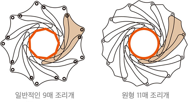 보케에 관한 이야기를 하고 있으니 조리개 날에 관한 이야기를 하지 않을 수 없습니다. 보케를 만드는 데 있어서 중요한 또 하나의 요소인 조리개 날은 고급 렌즈에서 사용되는 9매 구성에서 한발 더 나아간 원형 조리개 날 11매 구성으로 되어 있습니다.
