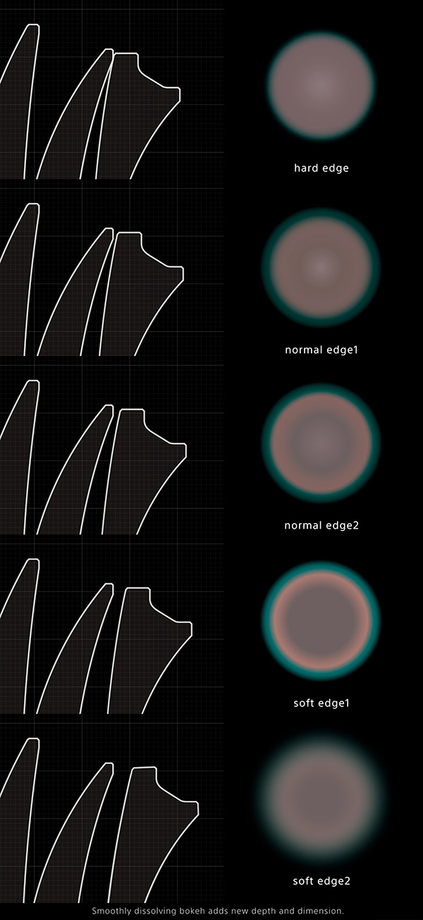 기존엔 렌즈를 설계해놓고 나서 보케의 결과가 이렇게 되었다 라는 방식으로서, 보케의 형태를 의도하여 렌즈 설계에 넣을 수 없었습니다. 약간의 우연과 설계자의 오랜 경험에 의해 만들어진 결과론적 보케였던 셈입니다.
