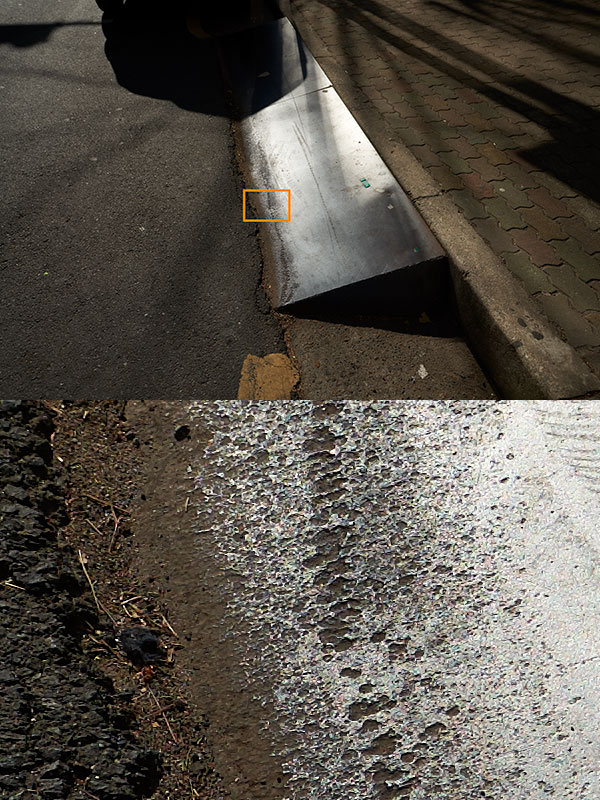 위의 사진은 축상 색수차가 얼마나 골치 아픈지 알 수 있는 대표적 사례입니다. 색이 있을 리 없는 무색 쇠에 렌즈 축상 색수차로 인하여 가짜 색이 입혀진 상황입니다. 초점이 맞은 기준으로 앞쪽은 마젠타, 뒤쪽은 그린이 끼어드는 2차 스펙트럼 문제로 인한 전형적인 형태입니다.