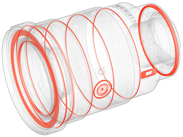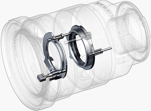 그런데 SONY는 일반적인 플로팅 구조에 필요한 물리적 캠에 다중 캠 레일 방식을 사용하지 않고, 완전히 독립된 제어 모터 두 개를 달아버립니다. 다시 말해 포커스 거리 변화에 따라 연동 발생하는 가변 수차를 이상적으로 보정하는 것이 가능해지며, 렌즈 설계와 구성이 복잡해지더라도 물리적인 캠의 제약에서 벗어난 최상의 플로팅 포커스 시스템을 설계할수 있게 됩니다. 심지어 렌즈의 무게까지 경량화할 수 있습니다.