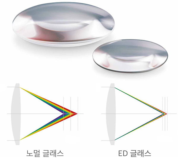 또한 저분산 글래스인 ED 렌즈를 2매 사용하여 특히 축상 색수차를 줄이는 데 일조하고 있습니다. 축상 색수차는 초점이 맞은면 기준 앞, 뒤에 가짜 색이 발생하는 골치 아픈 존재입니다.