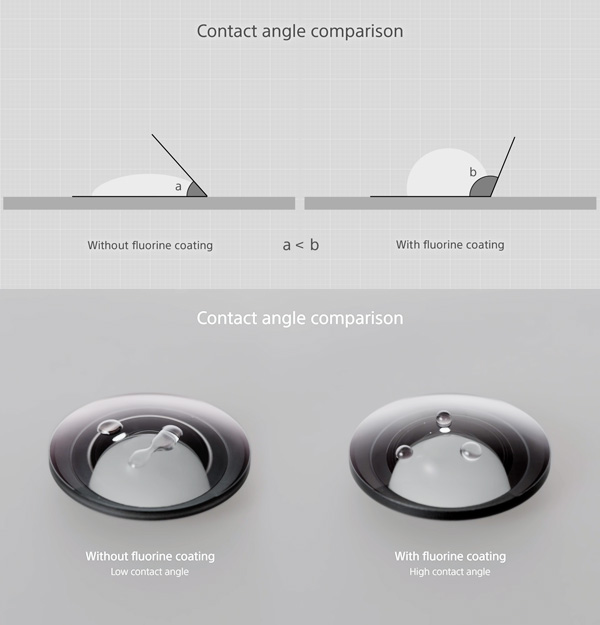 코팅 이야기하는 김에 한 가지 더 살펴보자면, 전면 대물렌즈에는 액체가 표면에 접촉 시 발생하는 표면장력을 높여 접촉각을 높게 만드는 불소 코팅까지 추가되어 있습니다.